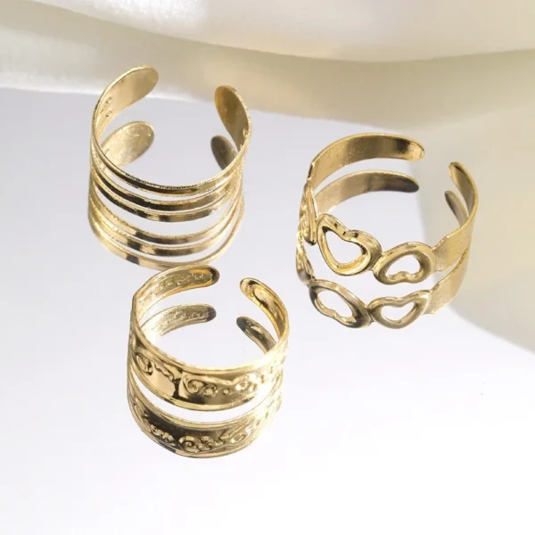 3PCS Fashion Ins Open Toe Rings for Women Adjustable Simple Minimal Hollow Heart Summer Beach Smooth Feet Ring Jewelry on Foot