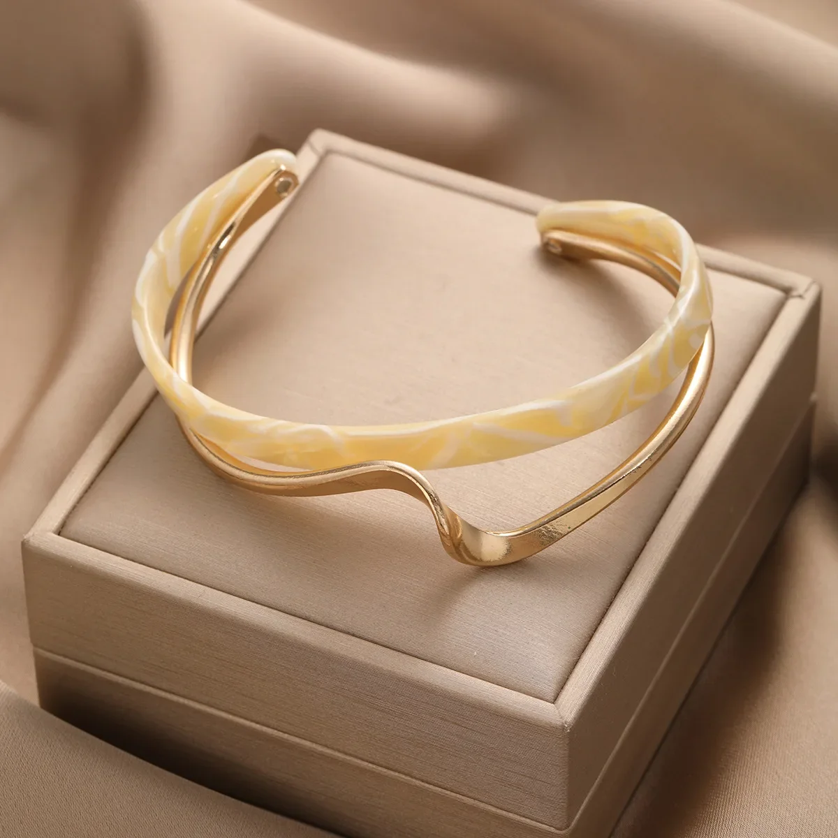 Korea Light Luxury White Shellfis Board Bracelet Bend Metallic Texture Bracelets Set for Women Fashion Jewelry Gifts Wholesale