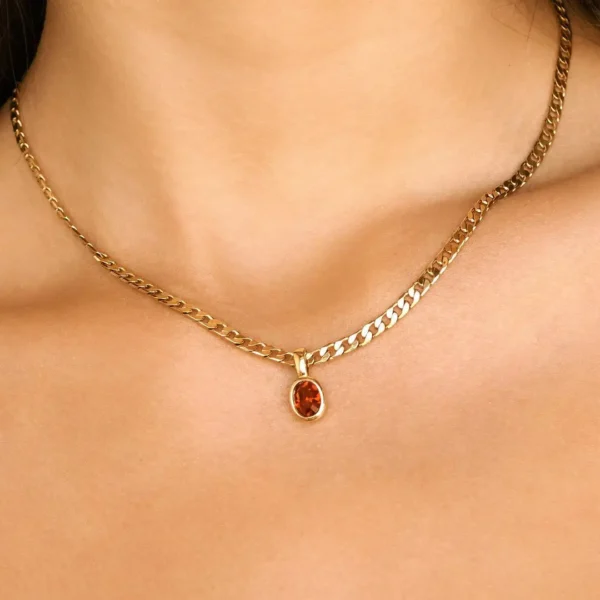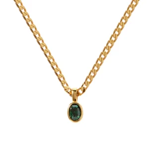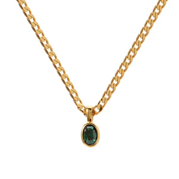 1 review for Dainty Stainless Steel Oval Multi-color Natural Stone Pendant Necklace for Women 18k Gold Plated Cuban Chain Necklaces Jewelry