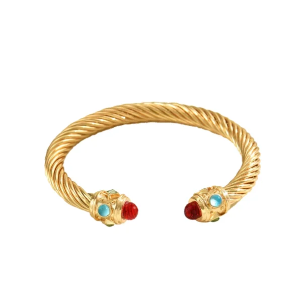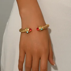 1 review for Geometric Opening Bangles & Bracelets Colorful CZ Crystal Clasp Copper Gold Plated for Women Cuff Jewelry Accessories Gift