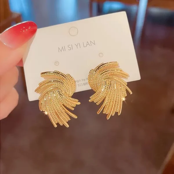Gold Color Metal Weaving Wing Stud Earrings for Female Fashion Sweet Geometry Wedding Jewelry Romantic Valentine’s Day Gift