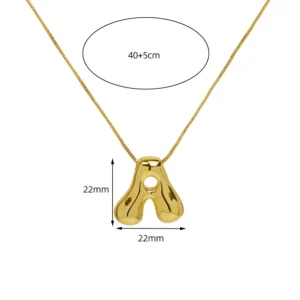 Golden Color Stainless Steel Initial Necklace for Women Girls Chunky Bubble Letter Pendant Necklaces Trendy Collar Jewelry Gift