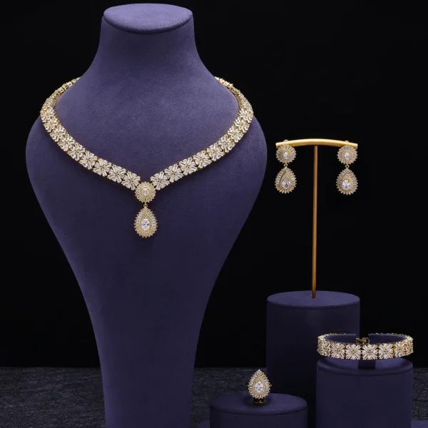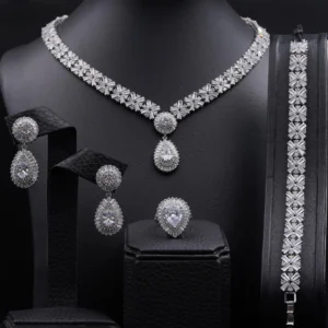 Be the first to review “Luxury Wedding Indian Bridal Jewelry Sets Women Snowflakes Cubic Zirconia 4 pcs Necklace Earrings for Women” Cancel reply