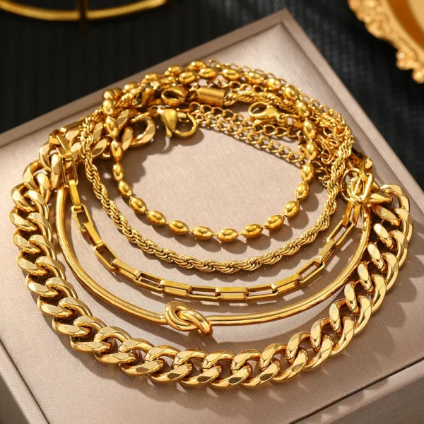 Stainless Steel Bracelets Set Fashionable Atmosphere Chain Gorgeous Bracelets Set For Women Jewelry Luxury Gift Recommendations