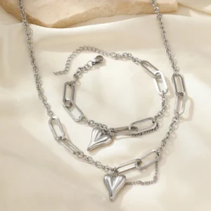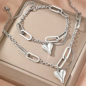 Stainless steel combination of two sets of new light luxury retro heart-shaped irregular chain women’s jewelry daily matching