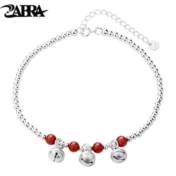 ZABRA 925 Silver South Red Bell Foot Chain Female Style Sexy Beaded Foot Ring Female Foot Chain New Style