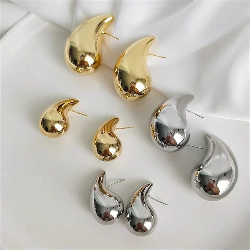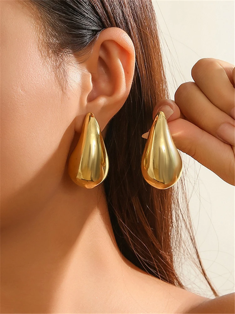 Vintage Chunky Dome Drop Earrings For Women Gold Plated Stainless Steel Thick Teardrop Earring Statement Wedding Jewelry Gifts