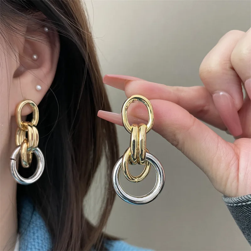 XIALUOKE Geometric Metal Round Multi-layer Pendant Earrings For Women's Party Wedding Festival Jewelry Accessories