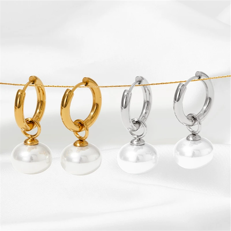 New Retro Imitation Pearl Stainless Steel Earrings Fashion Simple Exquisite Metal Ear Hoop Jewelry Party Gift